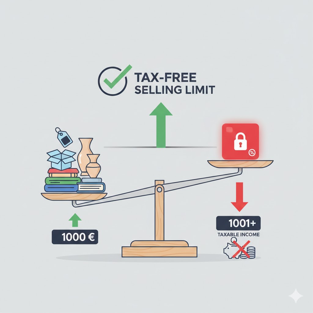 Mitä tarkoittaa 1 000 euron verovapaa myynti? Jos vuoden kaikkien luovutusten (myyntien) summa on enintään 1 000 euroa, voitot ovat verovapaita.